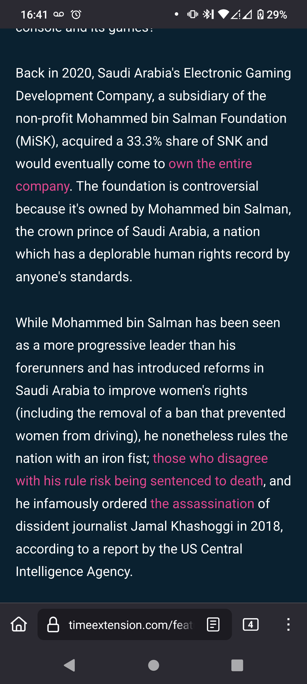 Back in 2020, Saudi Arabia’s Electronic Gaming Development Company, a subsidiary of the non-profit Mohammed bin Salman Foundation (MiSK), acquired a 33.3% share of SNK and would eventually come to own the entire company. The foundation is controversial because it’s owned by Mohammed bin Salman, the crown prince of Saudi Arabia, a nation which has a deplorable human rights record by anyone’s standards.